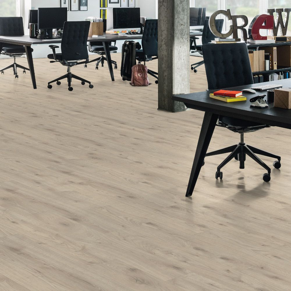 Diseñado para entornos exigentes, este suelo cuenta con resistencia a la humedad durante hasta 72 horas, gracias a su núcleo de baja hinchazón y el sistema de cierre Aqua CLIC it! sellado, permitiendo su instalación en cocinas, baños y zonas de limpieza frecuente. Además, incorpora una base acústica hecha de fibras naturales recicladas, lo que mejora la comodidad al caminar y reduce notablemente el ruido de pasos, ideal para viviendas familiares, oficinas y negocios.