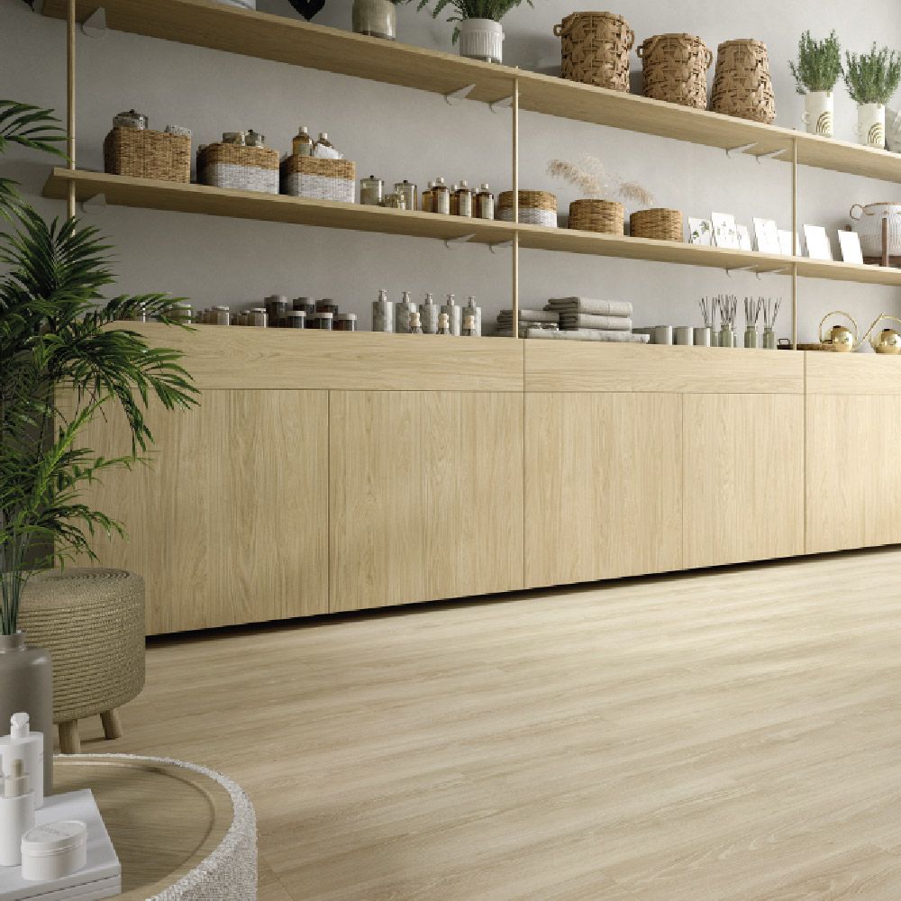 Tono roble crema claro, textura natural y acabado ultramate.
