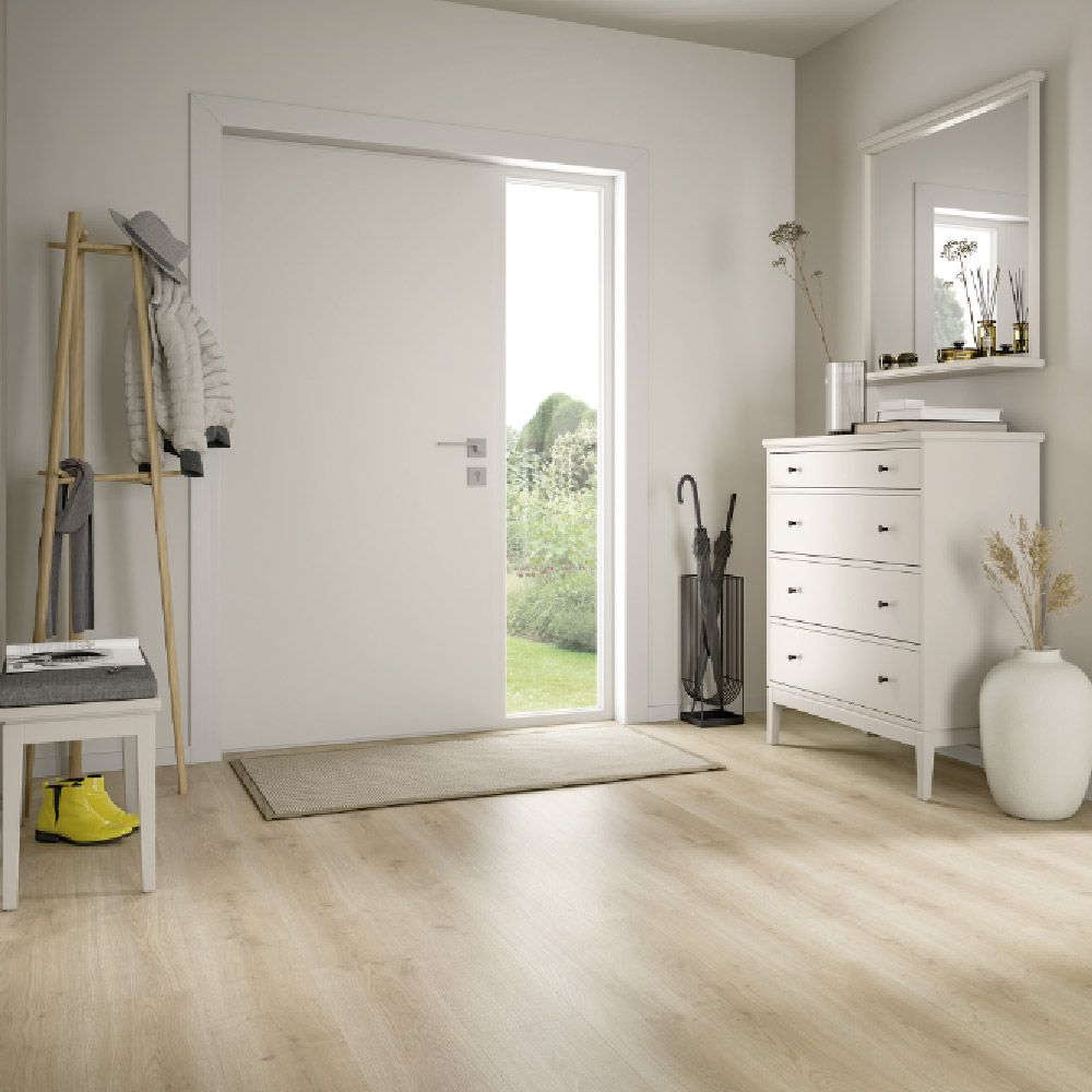 El modelo Roble Messina Claro EDF190 forma parte de la avanzada colección EGGER AquaDura+ Classic 7,5/33, una línea de suelos híbridos de última generación. Este diseño en roble claro, con textura natural y acabado ultramate, transmite luminosidad, amplitud y una estética acogedora perfecta para interiores escandinavos, contemporáneos o minimalistas.
