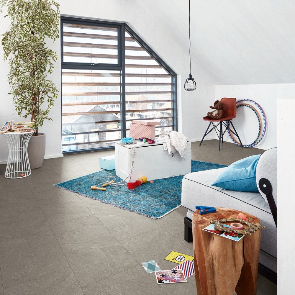Los suelos laminados MEISTER LB150 son conocidos por sus diseños que recuerdan al cemento pulido o el hormigón, perfectos para una renovación moderna en tu hogar. Con una clasificación de desgaste AC4, son especialmente adecuados para entornos comerciales con alto tráfico y áreas de uso doméstico intenso. Las lamas en formato de baldosas de esta tarima flotante para baños tienen unas dimensiones de 853x395mm y un grosor de 8mm. Gracias al sistema de instalación flotante con el sistema Masterclic Plus, la colocación es sencilla y cómoda.