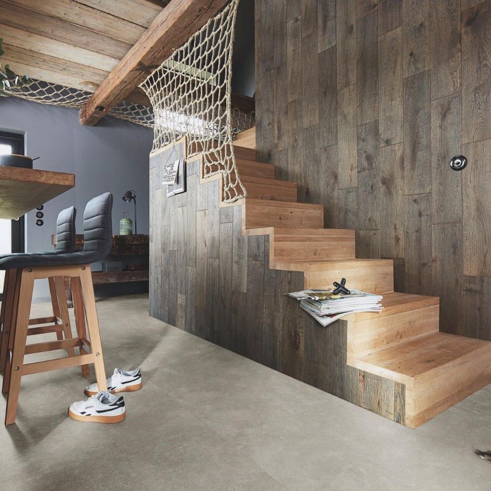 Los suelos laminados MEISTER LB150 son conocidos por sus diseños que recuerdan al cemento pulido o el hormigón, perfectos para una renovación moderna en tu hogar. Con una clasificación de desgaste AC4, son especialmente adecuados para entornos comerciales con alto tráfico y áreas de uso doméstico intenso. Las lamas en formato de baldosas de esta tarima flotante para baños tienen unas dimensiones de 853x395mm y un grosor de 8mm. Gracias al sistema de instalación flotante con el sistema Masterclic Plus, la colocación es sencilla y cómoda.
