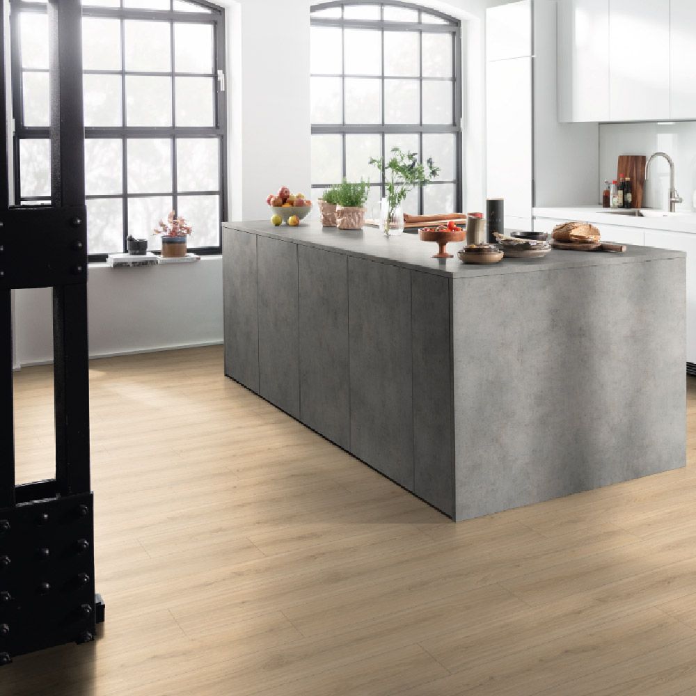 El suelo laminado Roble Padua Claro EL2170 de la colección EGGER NatureSense Aqua+ Classic 8/32 destaca por su tono claro, que aporta una sensación de espacio, limpieza y claridad. Su diseño en roble natural suave con vetas poco marcadas es perfecto para estilos escandinavos, costeros o contemporáneos, ofreciendo una base neutra y elegante para cualquier decoración.