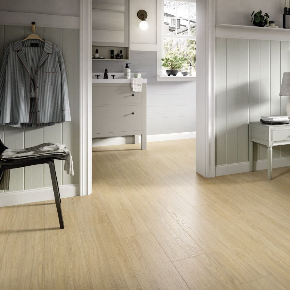 Gracias a su formato Classic (1292 × 193 mm), con grosor de 8 mm y biselado 4V, este suelo proporciona una apariencia continua y sofisticada. Su clasificación AC4 / Clase 32 lo hace ideal para hogares con uso intensivo, oficinas o comercios de tránsito moderado.