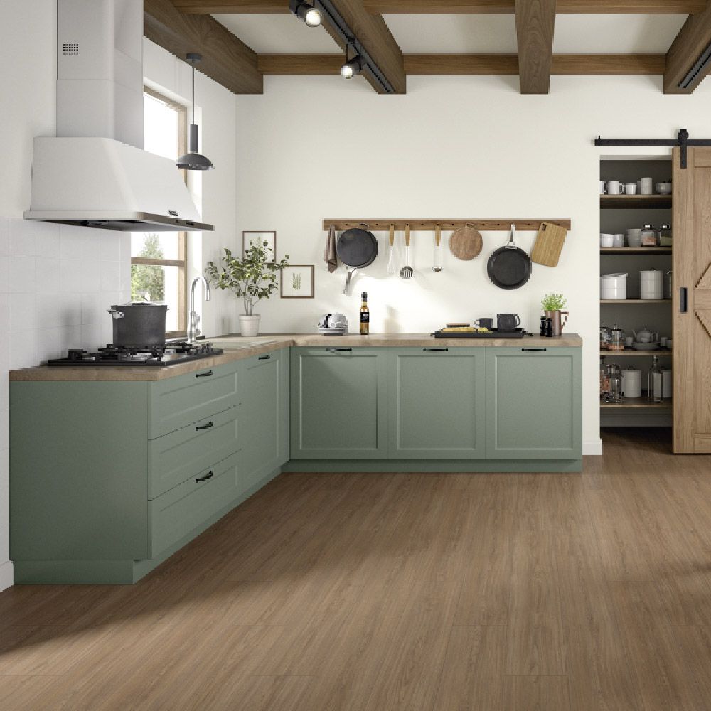 Gracias a su resistencia al agua durante 72 horas, este suelo laminado se adapta perfectamente a zonas con humedad frecuente como cocinas, pasillos o entradas. Su clasificación AC4 / Clase 32 garantiza una excelente durabilidad en viviendas con mucho tránsito o incluso en espacios comerciales moderados.