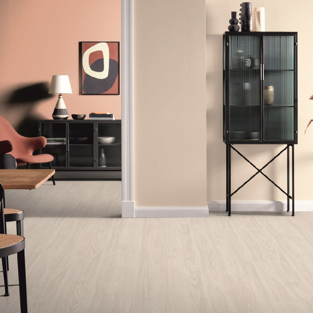 El modelo Acacia Sheffield Blanco EL1096 pertenece a la colección NatureSense Aqua Classic 8/33 de EGGER, y está diseñado para quienes desean un suelo claro, elegante y versátil. Su acabado en blanco acacia con vetas suaves y textura sincronizada crea una atmósfera limpia, luminosa y relajante, ideal para espacios de estilo nórdico, minimalista o contemporáneo.