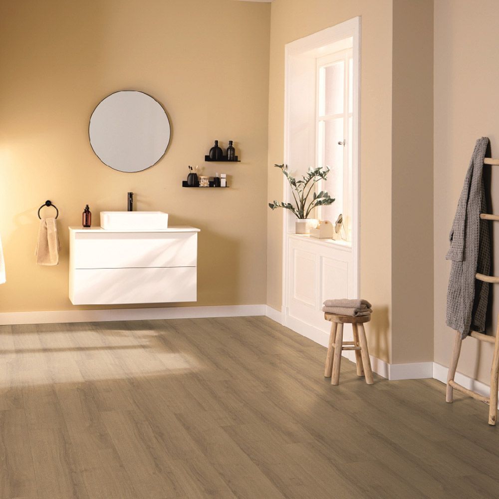 Gracias a su tecnología resistente a la humedad durante 24 horas y al sistema de instalación Aqua CLIC it!, este suelo puede colocarse fácilmente en cocinas, baños o entradas. Su clasificación AC5 / Clase 33 garantiza una durabilidad sobresaliente frente a arañazos, impactos y desgaste diario.