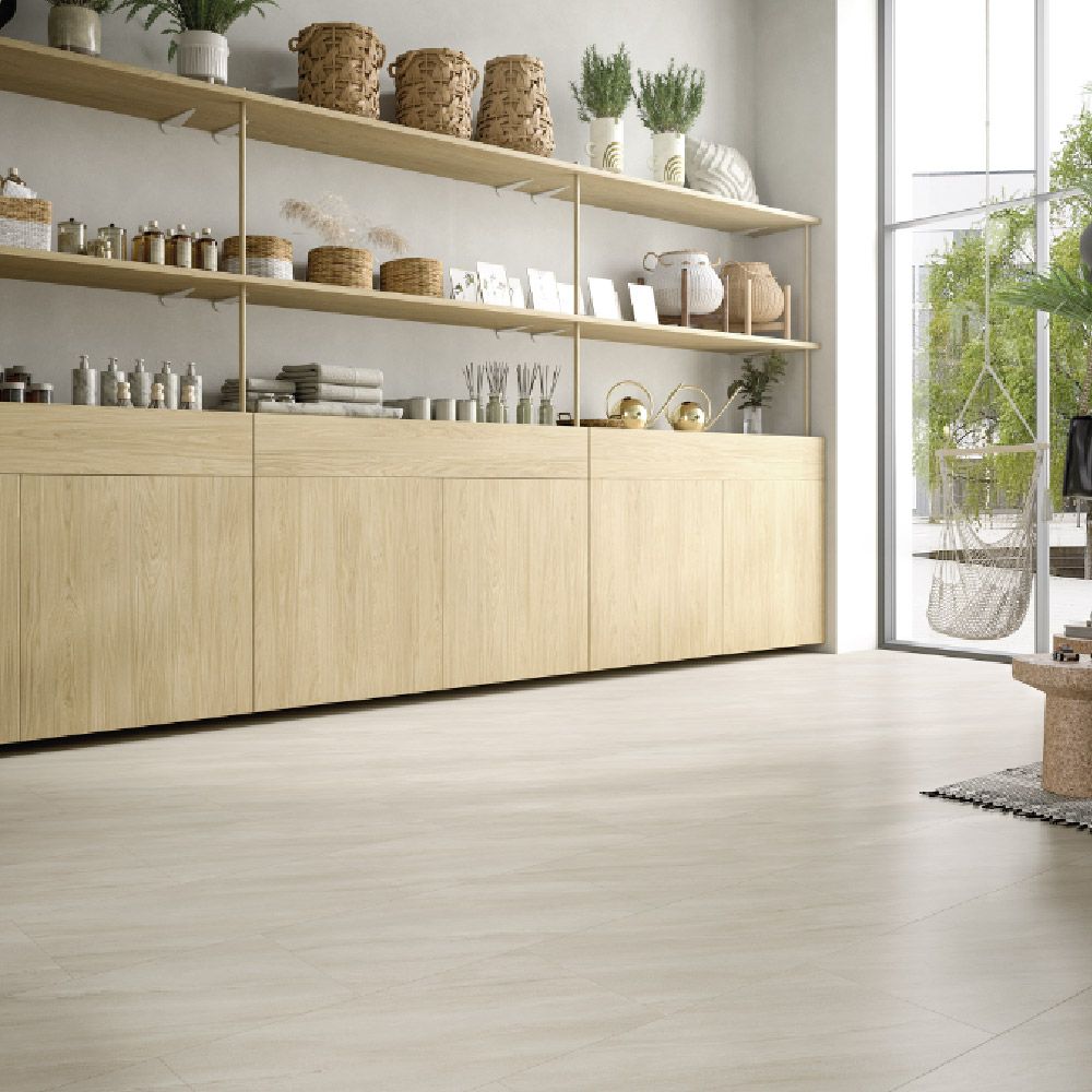 Diseño tipo piedra caliza en tono arena claro, elegante y atemporal.