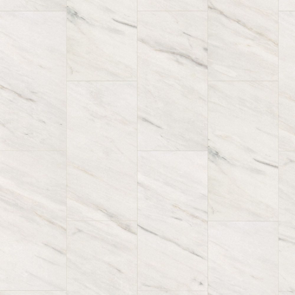 Inspirado en la piedra natural, este suelo reproduce el aspecto clásico del mármol blanco con vetas grises sutiles, lo que lo convierte en una elección refinada y luminosa para interiores contemporáneos. Su formato KingSize (1292 × 327 mm) potencia el efecto visual del mármol, minimizando juntas y generando un acabado más uniforme y sofisticado.