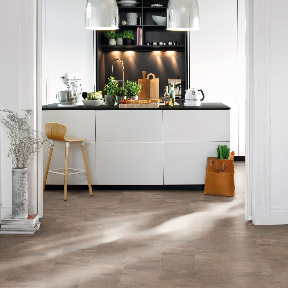 Este suelo destaca por su diseño mineral en tono beige claro, que aporta una estética natural, suave y contemporánea. Es ideal para interiores minimalistas, escandinavos o de inspiración orgánica. Su superficie con textura mate y realismo visual lo convierte en una opción sofisticada y atemporal.