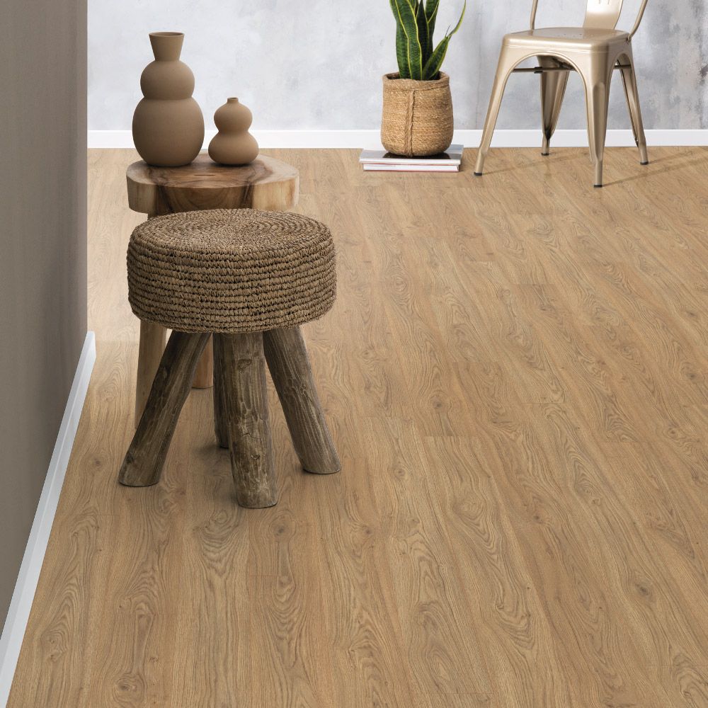 Su formato Medium (1292 x 135 mm) con grosor de 8 mm y biselado en los cuatro lados proporciona una estética definida y fluida, perfecta para salones, cocinas, dormitorios o despachos. Gracias a su resistencia a la humedad durante 24 horas y al sistema de instalación Aqua CLIC it!, es una opción muy práctica para zonas de uso frecuente.