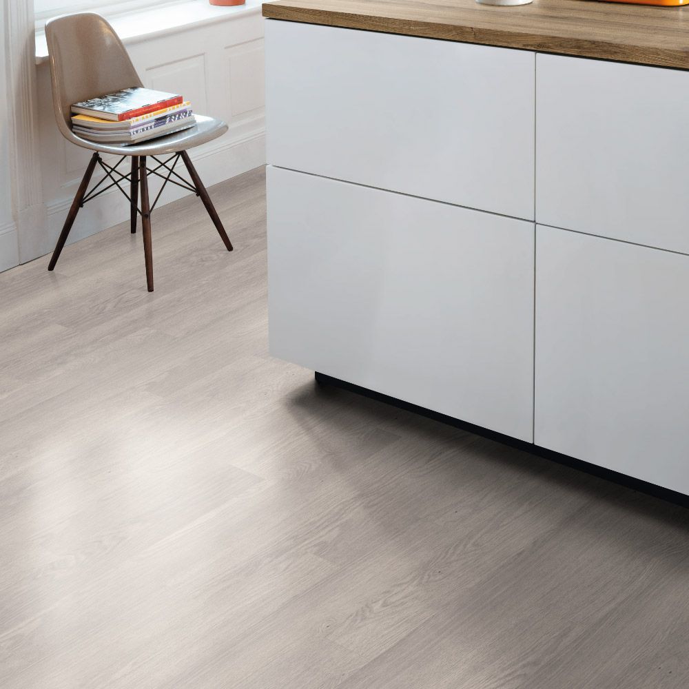 Con un formato Medium (1292 x 135 mm), lamas estrechas y biselado en los cuatro lados, este suelo genera una sensación de amplitud vertical y dinamismo visual. Además, su resistencia a la humedad durante 24 horas y la instalación rápida mediante sistema Aqua CLIC it! lo convierten en una solución práctica para zonas exigentes del hogar como cocinas, baños, pasillos o entradas.